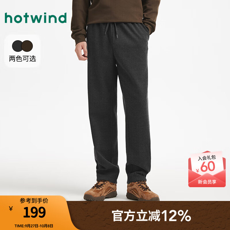 热风男士直筒宽松卫裤2025年冬季新款舒适通勤户外运动风休闲长裤子 52深灰 S