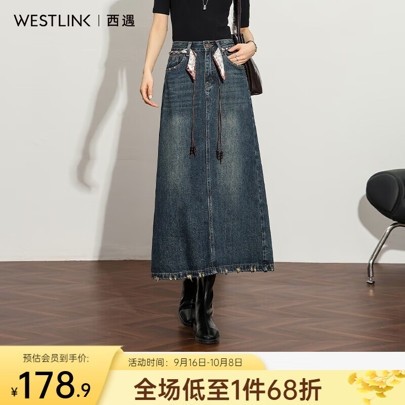 西遇(Westlink)复古通勤百搭水洗牛仔裙女2025秋季气质高腰显瘦H型半身裙 蓝色 M (27)