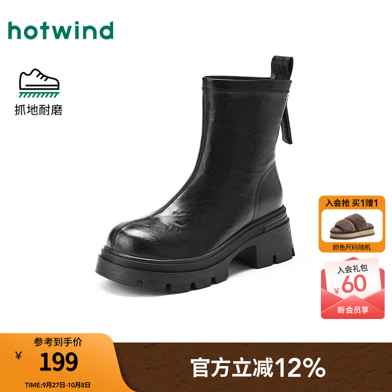 热风厚底短靴2025年冬季新款时装靴百搭马丁靴中筒瘦瘦靴增高靴子 01黑色 37