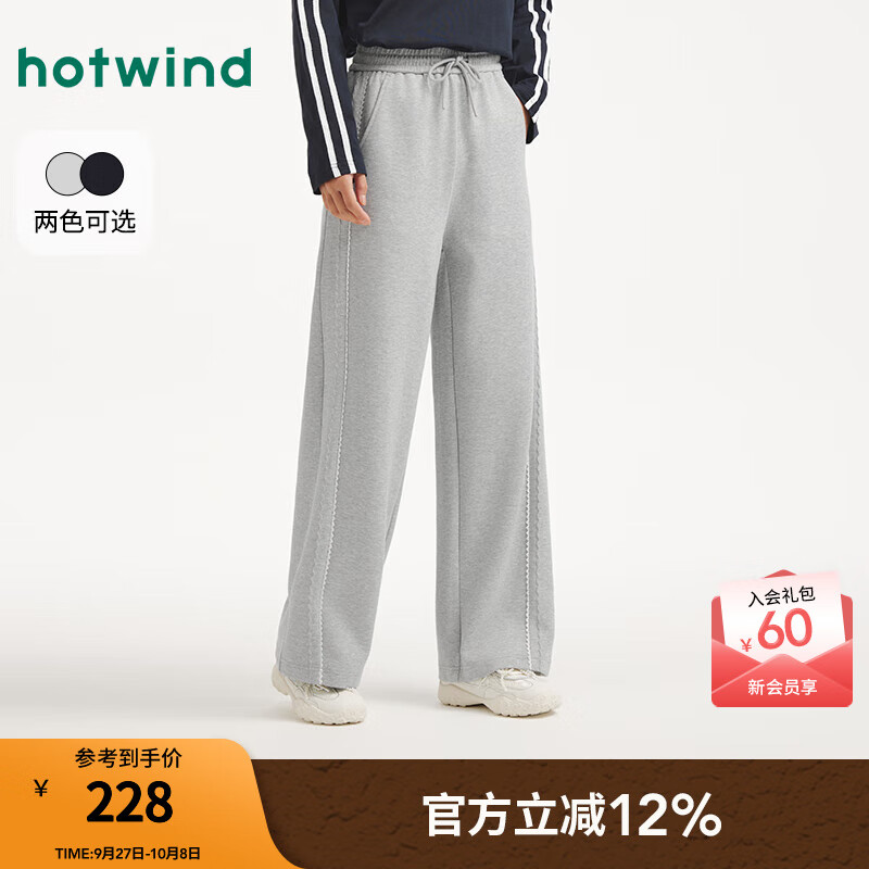 热风【商场同款】女士直筒卫裤2025年秋季新款花边宽松休闲松紧腰长裤 09灰色 L