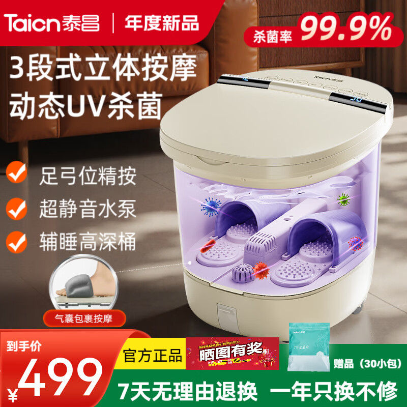 泰昌(Taicn)智能泡脚桶恒温杀菌足浴洗脚盆过小腿高深桶加热自动按摩2025中秋国庆节礼物送父母长辈 TC-055D杏色(六档气囊包裹按摩)