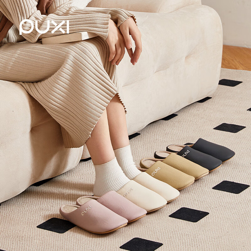 朴西2025新款棉拖鞋女秋冬季居家室内木地板包头静音情侣棉拖鞋 米白 35-36