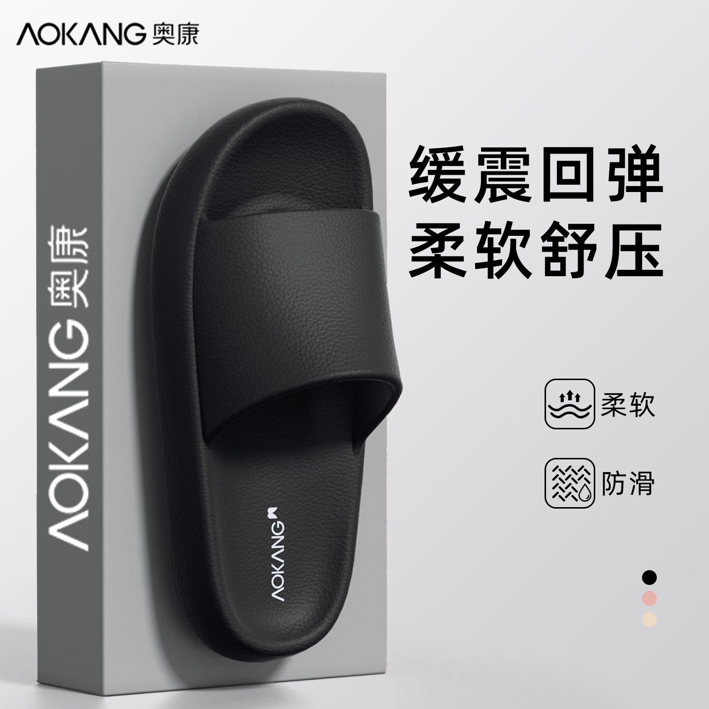 奥康(Aokang)踩屎感凉拖鞋男士家用2025新款夏季情侣浴室内洗澡防滑女厚底外穿 暗夜黑 42-43 【适合41-42】