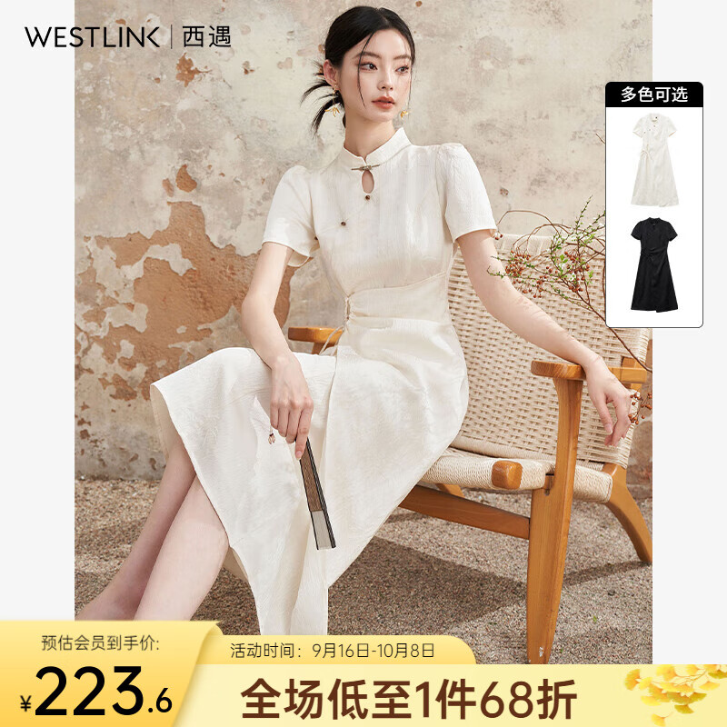 西遇新中式国风花卉印花连衣裙2025夏季古典立领盘扣短袖改良旗袍 粉色 S (155)