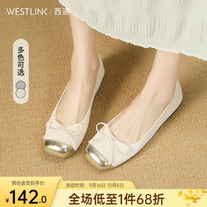 西遇蝴蝶结单鞋女2025新款秋季芭蕾鞋小香风一脚蹬浅口平底鞋 米色 37 (235)