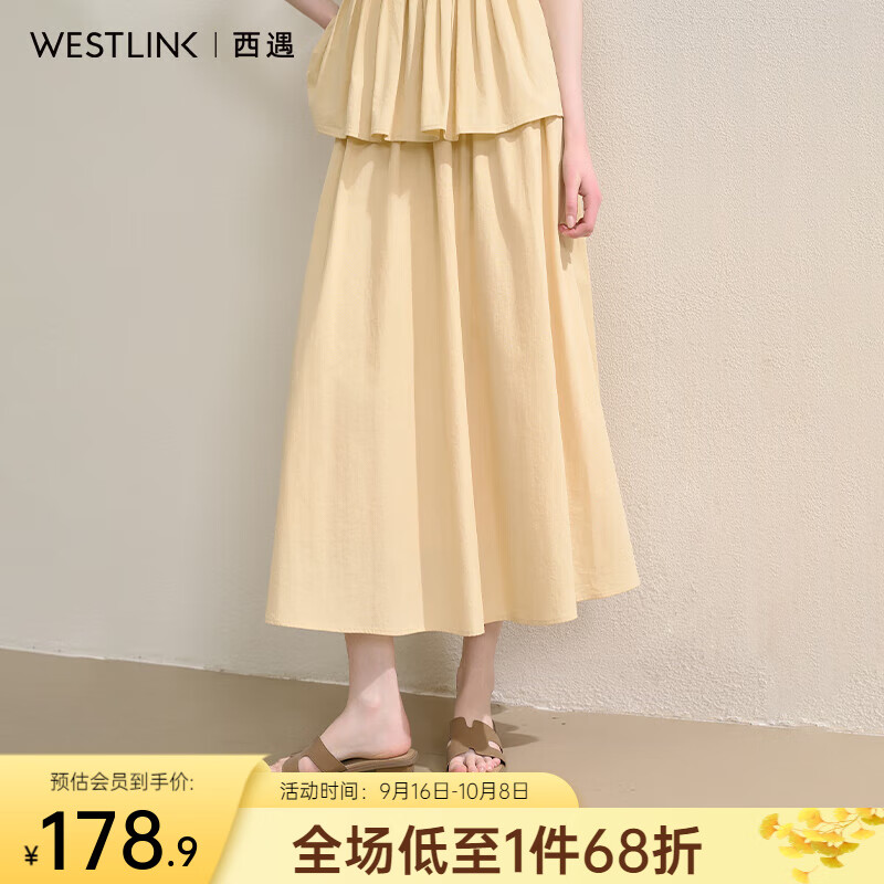 西遇(Westlink)法式浪漫设计感拼接碎褶半身裙女夏季A字伞摆半裙 黄色 S (26)