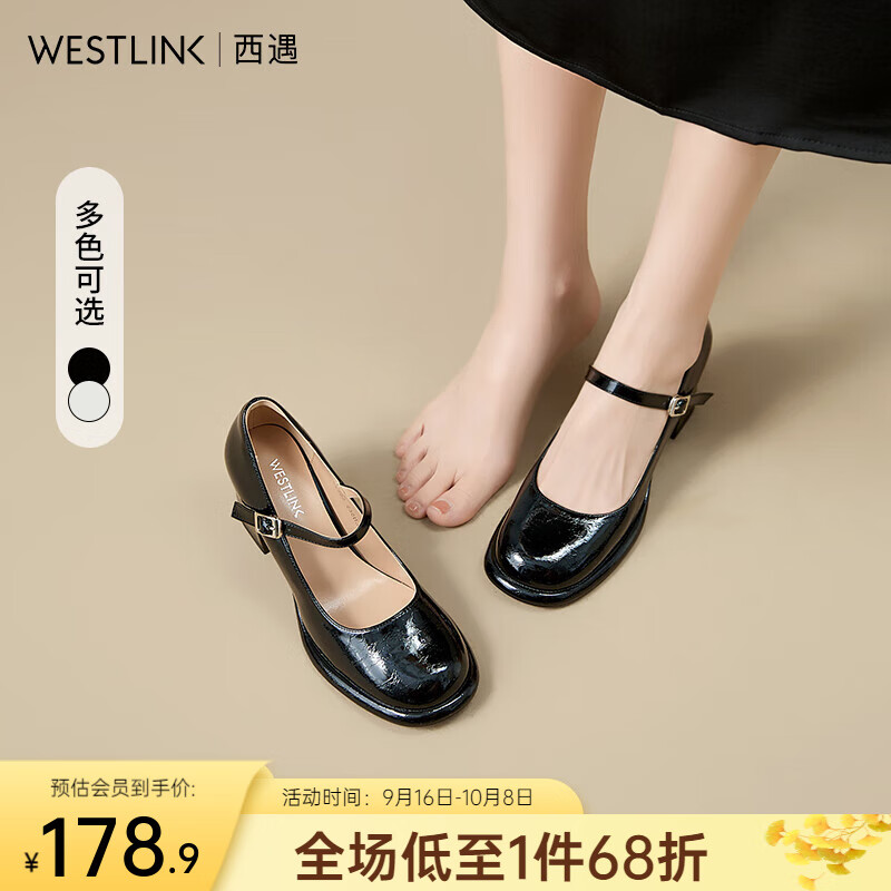 西遇粗跟高跟鞋女2025新款秋季防水台法式圆头玛丽珍鞋配裙子单鞋 黑色 35 (225)