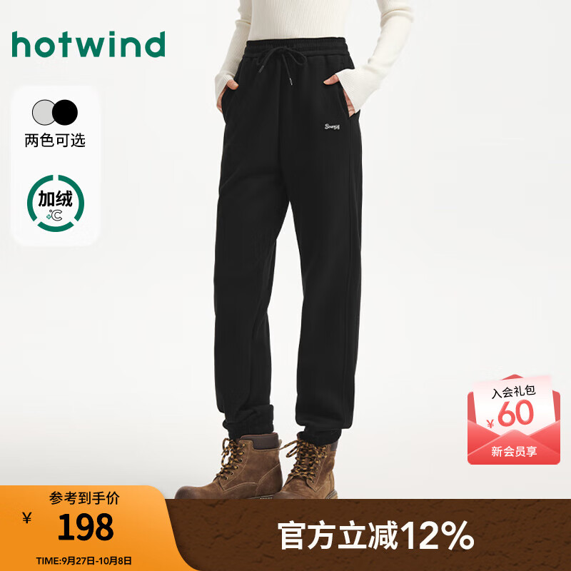 热风(Hotwind)【商场同款】女士加绒卫裤2025年冬季新款休闲束脚卫裤运动风长裤 01黑色 M
