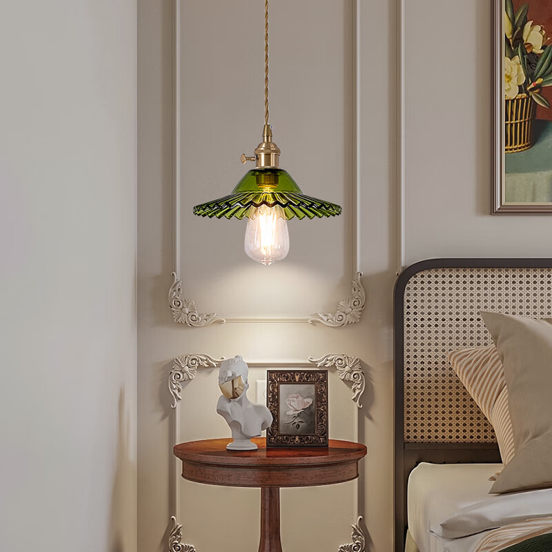 华艺照明(HUAYI)法式复古床头吊灯花朵创意玻璃小吊灯北欧简约中古风吧台小吊灯 【飞碟款】复古绿-暖光