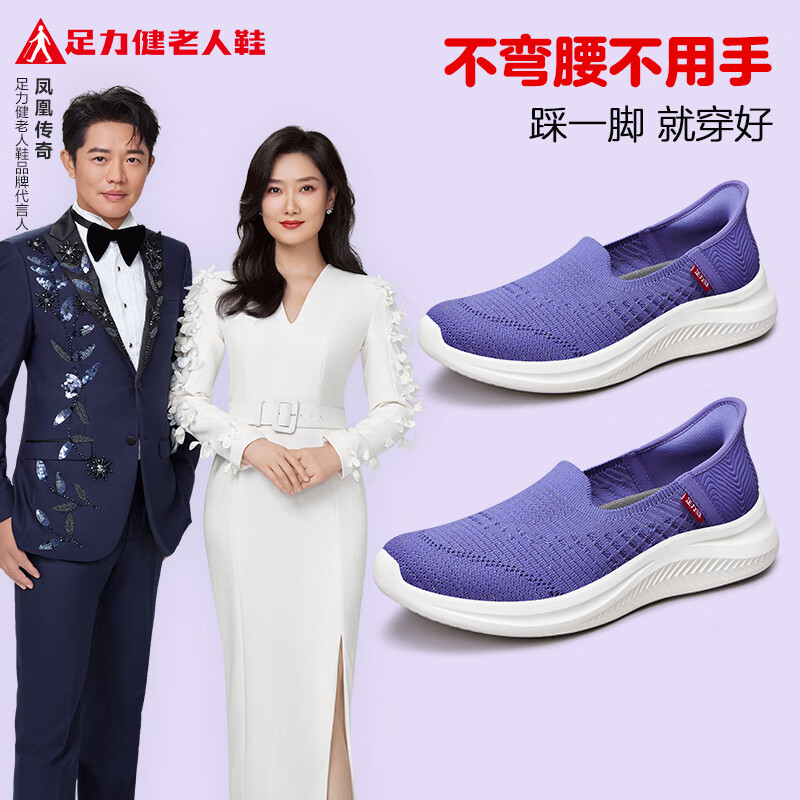 足力健老人鞋爸爸妈妈鞋轻便软弹柔顺送礼休闲舒适一脚蹬送长辈 星空蓝-女款 37