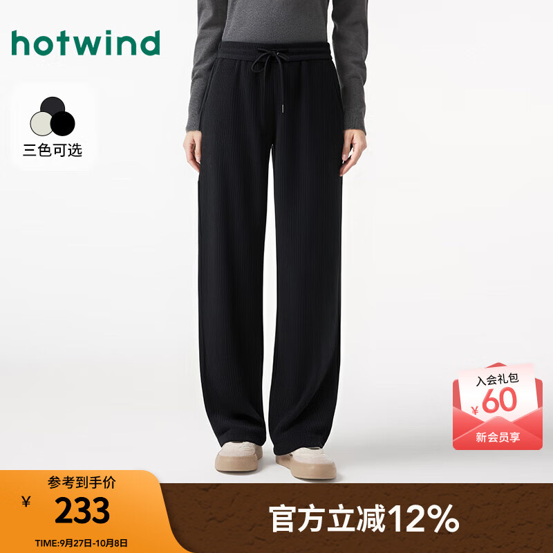 热风(Hotwind)【商场同款】女士卫裤宽松裤2025年冬季新款肌理直筒裤松紧腰长裤 01黑色 S