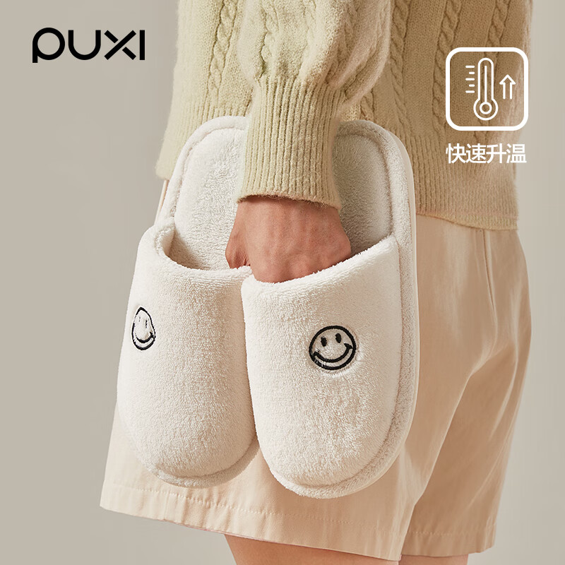 朴西悠居棉拖鞋女新款秋冬季室内居家用保暖加绒防滑不臭脚情侣棉拖鞋 米白 35-36