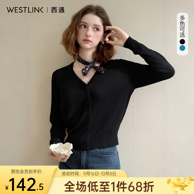 西遇(Westlink)西遇气质温柔V领单排扣针织衫女2025秋季新款显瘦百搭开衫外套 黑色 M (160)