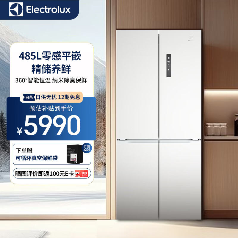 伊莱克斯(Electrolux)零感平嵌大容量 多维变温储鲜智能恒温净味一级能效冰箱485L EQE4800A-W