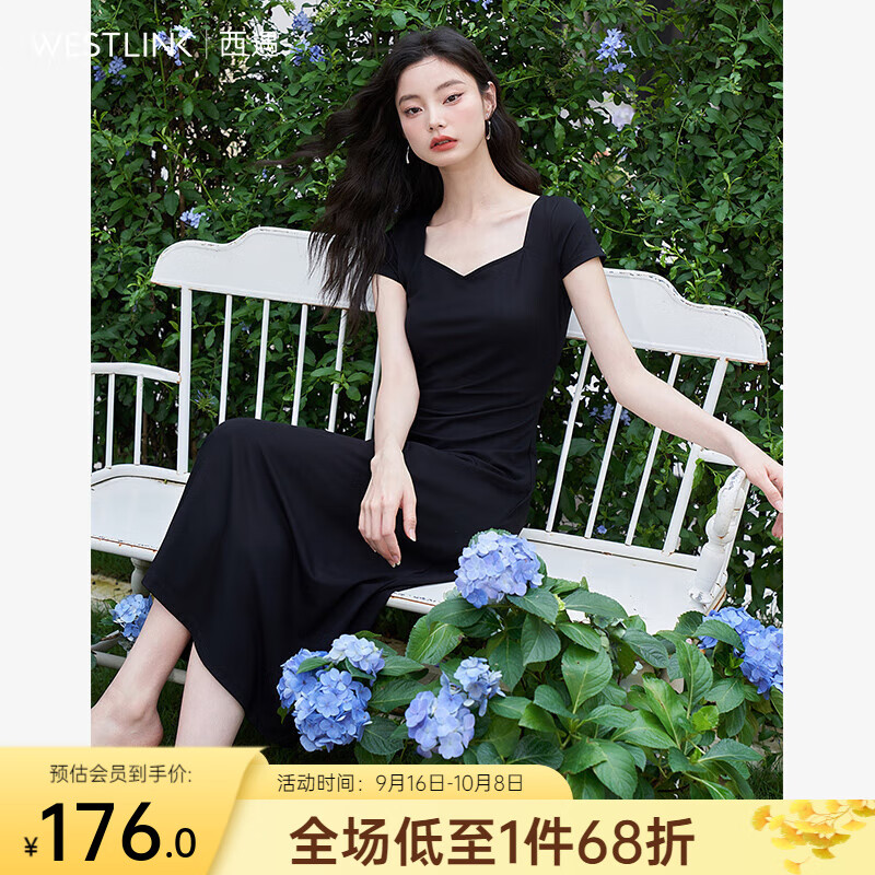 西遇(Westlink)气质桃心领针织连衣裙女夏季新款时尚高级显瘦黑色短袖裙 黑色 XL