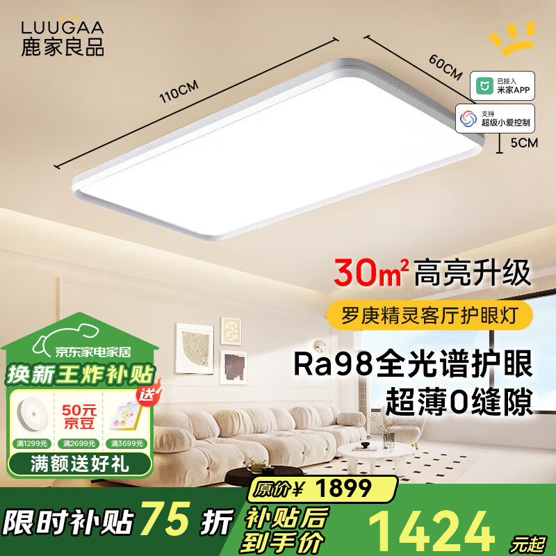 鹿家良品(LUUGAA)【SH】罗庚精灵全光谱护眼客厅吸顶灯简约现代客厅灯大灯卧室灯具 【荐】全光谱客厅110cm无极光123W智能联动