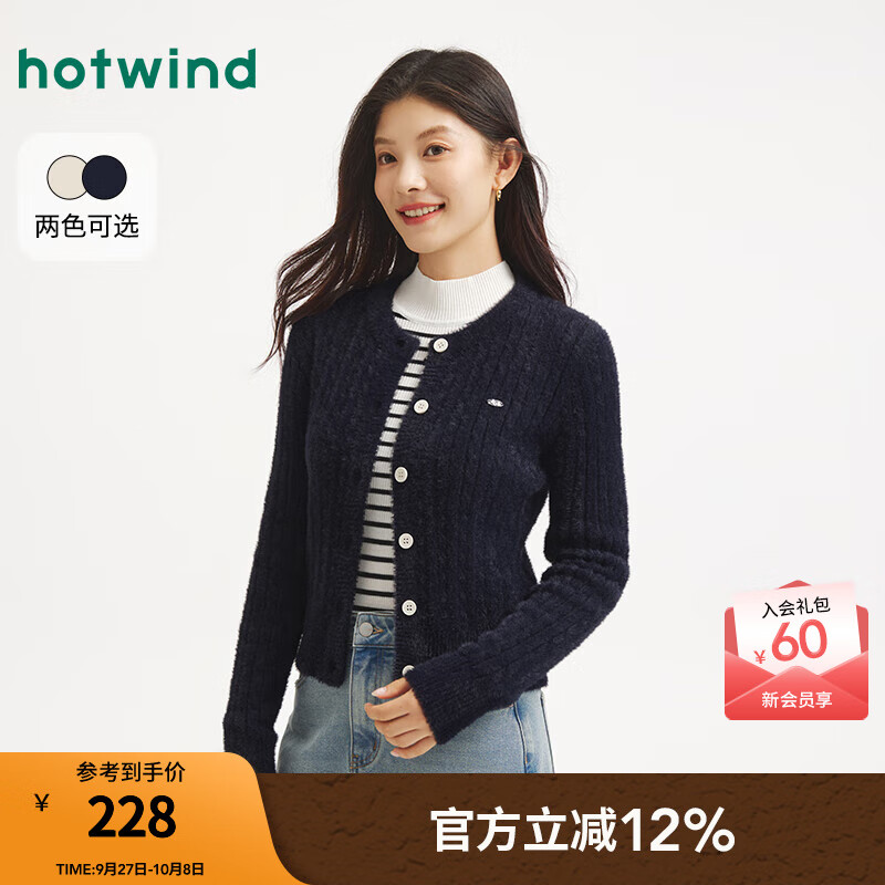 热风【商场同款】女士开衫毛衣针织衫上衣2025年冬季新款绒感打底衫 29藏青兰 S