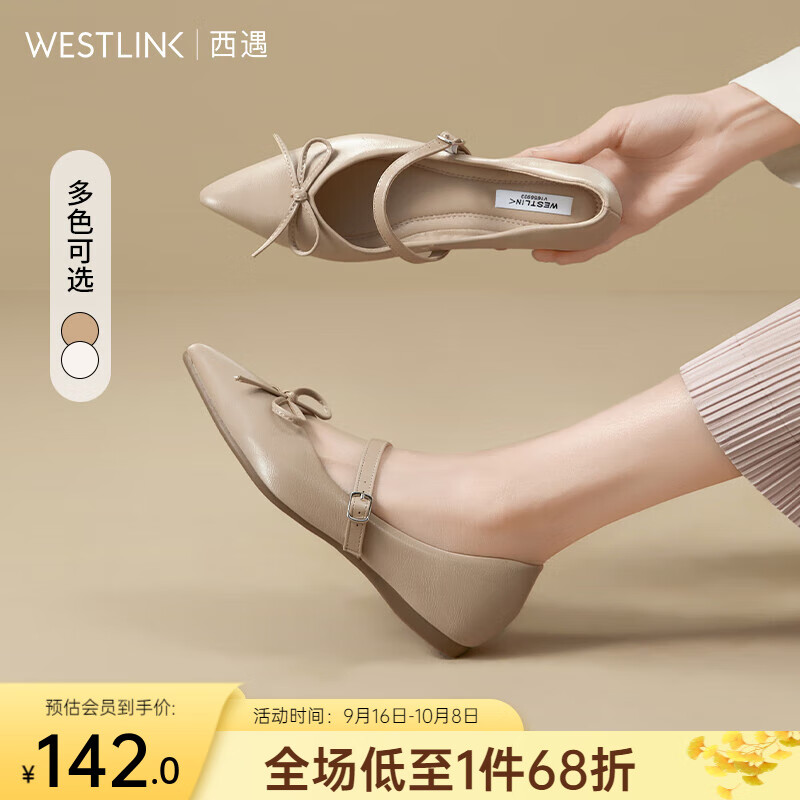 西遇尖头玛丽珍鞋女2025新款秋季芭蕾风平底鞋浅口软底单鞋 杏色 38 (240)