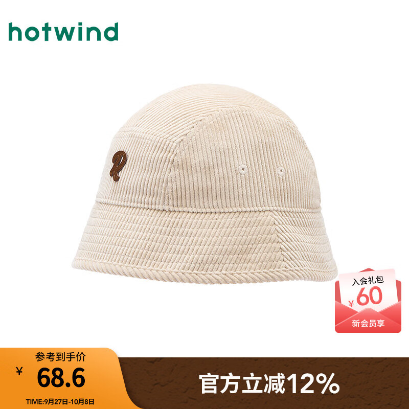 热风【商场同款】女帽子2025年秋季新款灯芯绒短檐盆帽复古保暖渔夫帽 03米色 F