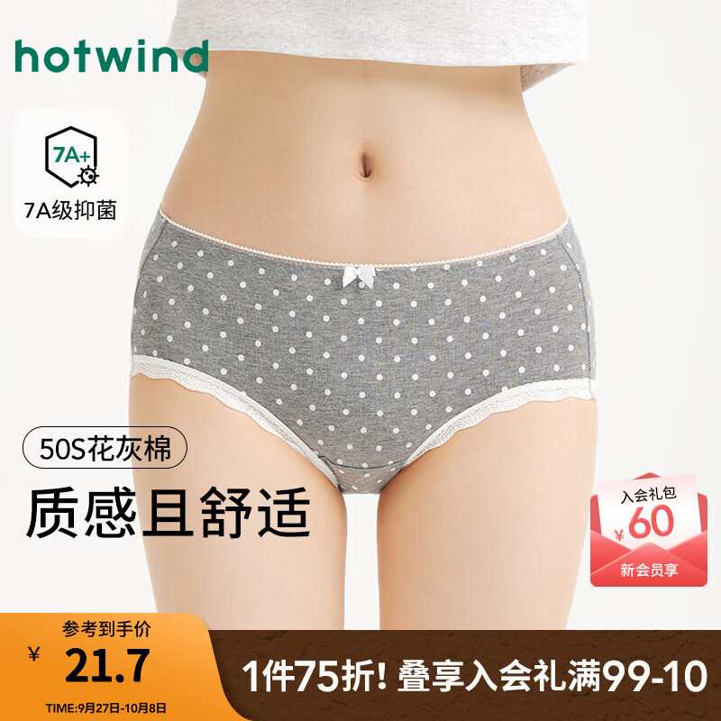 热风【商场同款】女士内裤2025年秋款法式波点中腰内裤抑菌蕾丝边内裤 09灰色 1条 M
