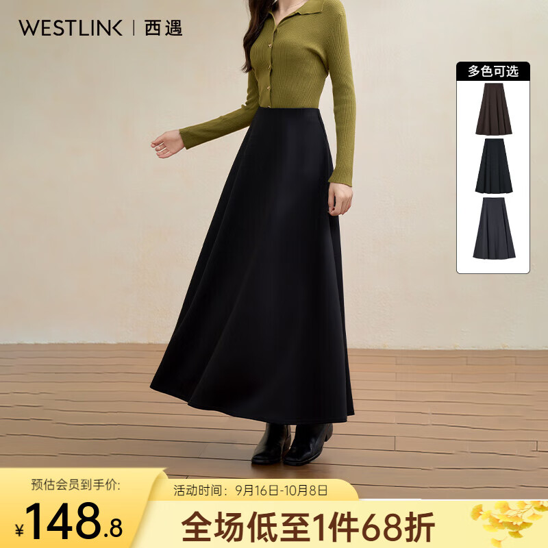 西遇a字半身裙女秋季新款通勤百褶大裙摆高腰显瘦长款伞裙 黑色 (预售15天) L (28)