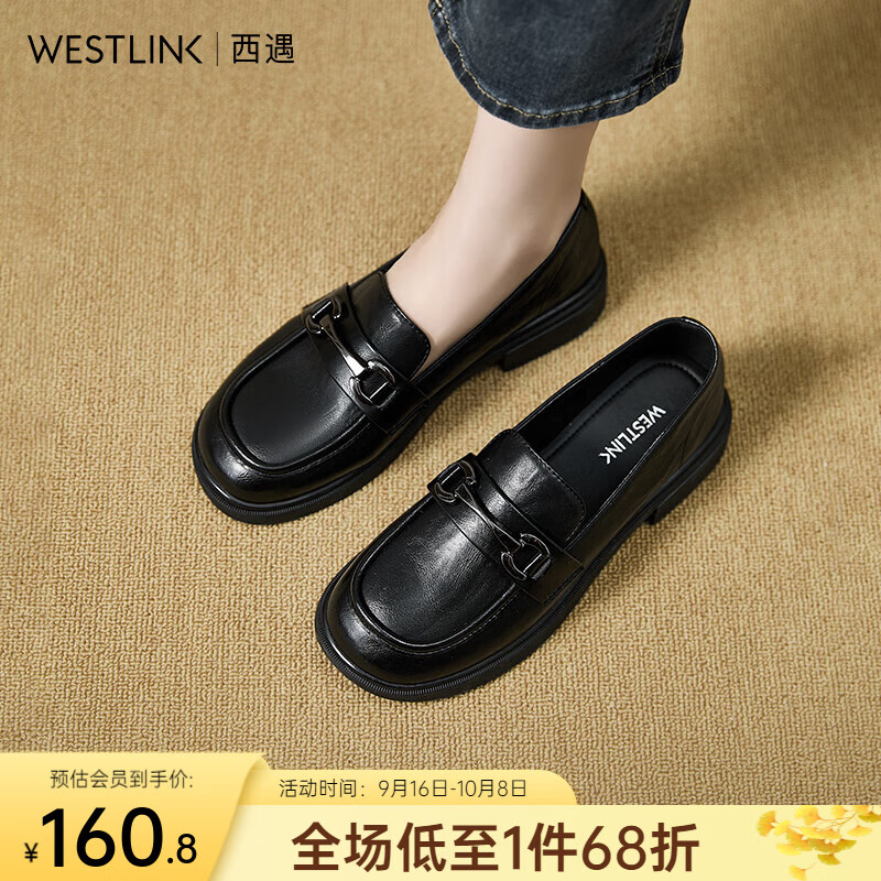 西遇平底乐福鞋女2025新款秋季简约一脚蹬单鞋黑色小皮鞋 黑色 37 (235)