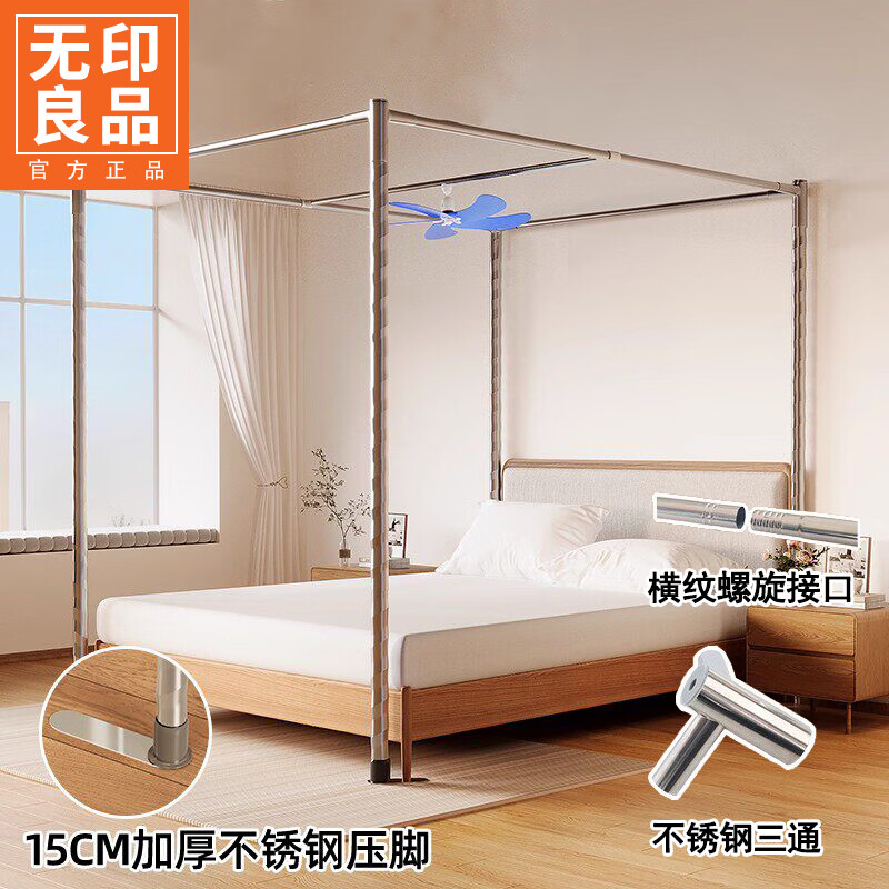 无印良品落地蚊帐支架1.8x2米加粗加厚不锈钢家用单蚊帐杆支架全套一体式 32mm特粗支架整套【送备用三通】 适用1.8m床-宽180x长200x高200cm【支架加粗 稳固不晃】