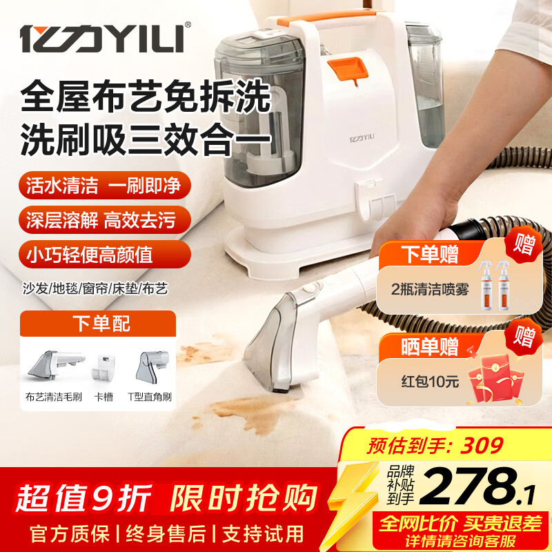 亿力家用布艺清洗机地毯沙发清洗机窗帘床垫喷刷抽洗吸一体清洁机全屋家政保洁布艺多功能清洁申请6336 YLW6336布艺清洗机