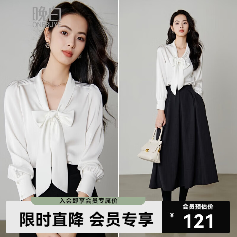 晚白【新品】系带蝴蝶结领白衬衫女2026春款时尚气质上衣通勤百搭衬衣 白色 L