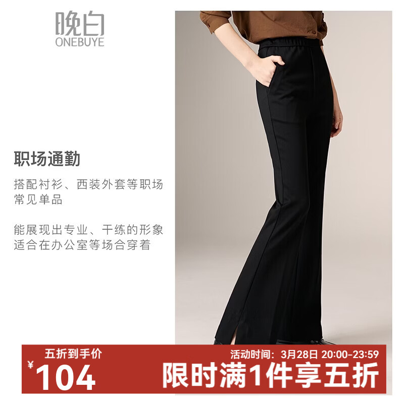 晚白【新品】2026春款经典高腰裤子修身显瘦职场通勤微喇裤女 黑色 28