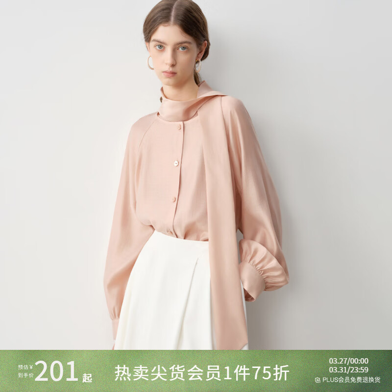 自巧小个子天丝醋酸法式飘带格纹衬衫女2026春季新品前后两穿上衣 藕粉色 XS (尺码:2)