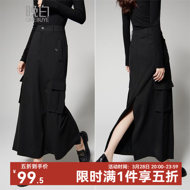 晚白【新品】2026年春款经典工装风半裙高腰显瘦日常通勤半身裙 黑色 S