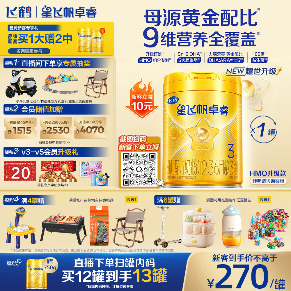 飞鹤星飞帆卓睿 幼儿配方奶粉3段(1-3岁)750g 乳铁蛋白