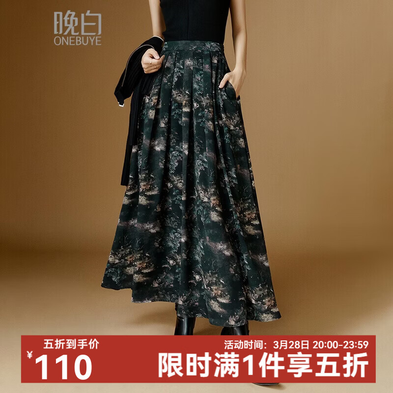 晚白【新品】2026年春款时尚复古文艺风长裙雪纺印花减龄大摆半身裙 花色 XL