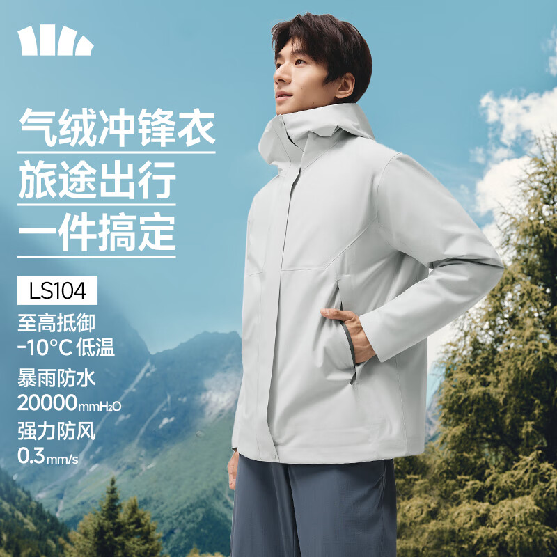 蕉下(beneunder)冲锋衣男三合一外套夹克男气绒服可拆卸内胆登山服LS104藤雾灰2XL