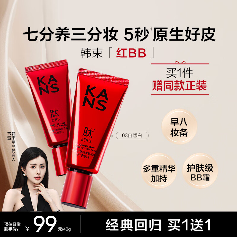韩束【爆款红BB】水润轻妆粉底液护肤级BB霜 03自然白 40g 双11特惠