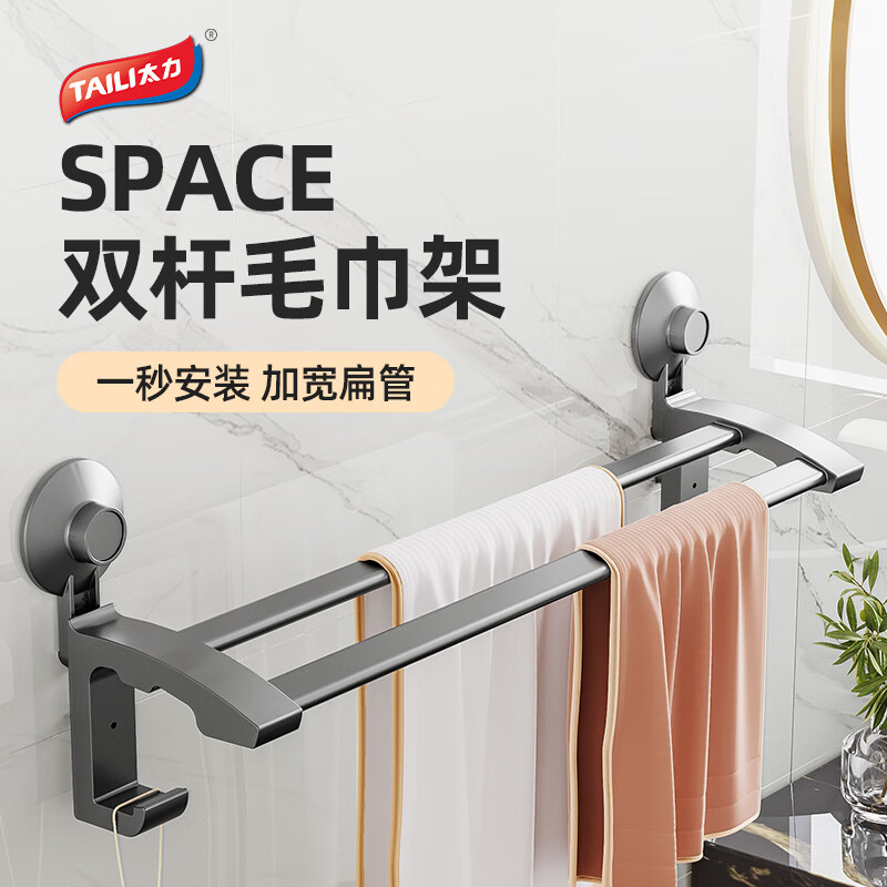 太力Space系列双杆毛巾架免打孔壁挂上墙卫生间浴室置物架厕所挂架 【双杆款】毛巾杆 50cm