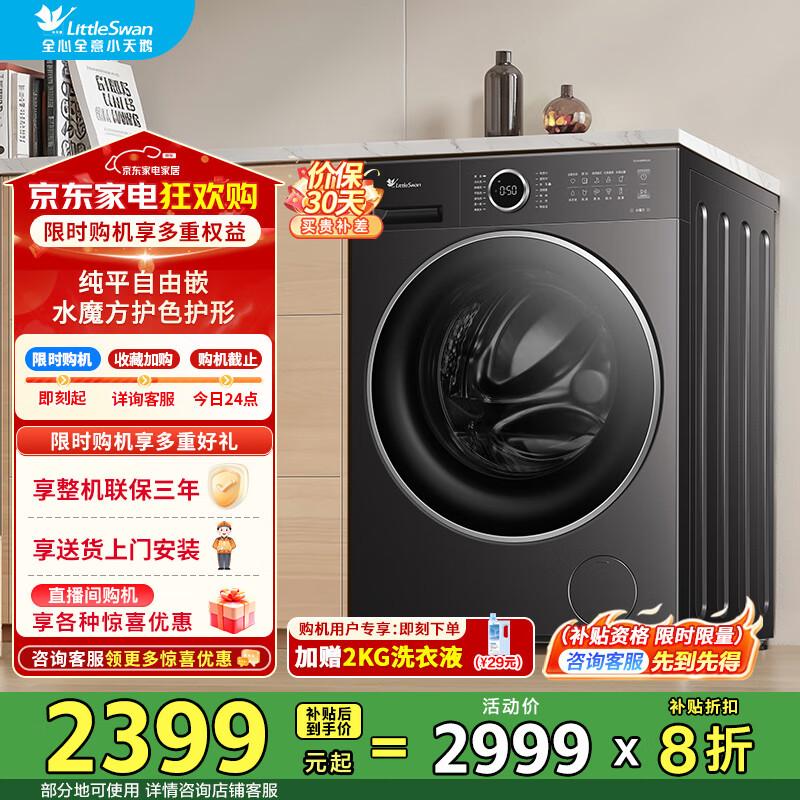 小天鹅(LittleSwan)滚筒洗衣机全自动家用 10公斤水魔方纯平自由嵌 1.28超高洗净比AI智投 一级能效 TG10V628PLUS