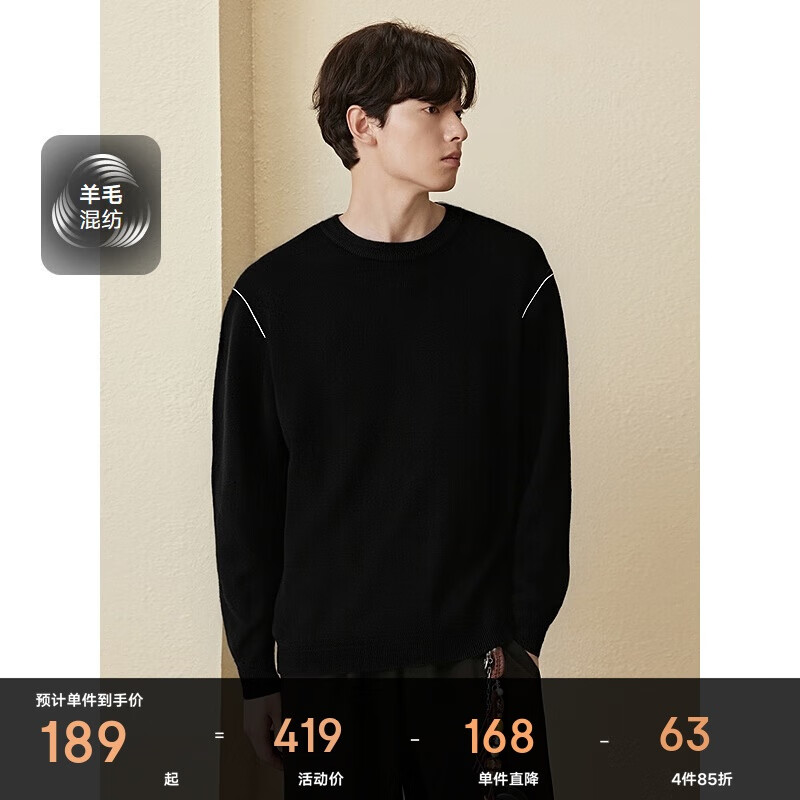 GXG男装 撞色线衫雪尼尔毛衣通勤保暖 24年冬 黑色 175/L