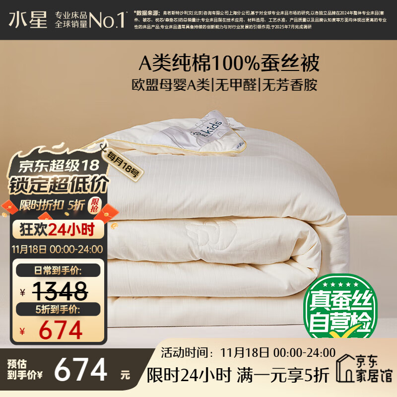 水星儿童被子蚕丝被100%蚕丝冬被冬季加厚被芯A类空调被约5.9斤200*230cm