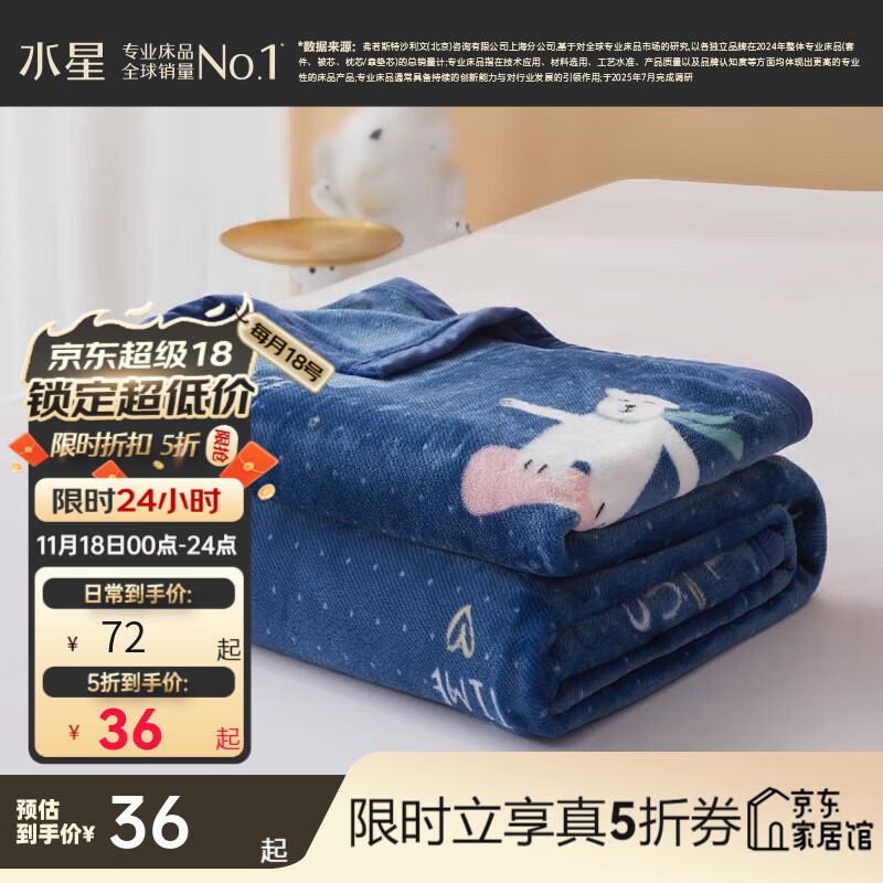 水星家纺 毛毯法兰绒毯 母婴A类秋冬盖毯毛巾被午睡毯子办公室空调毯 滑雪熊(母婴A类+一毯多用) 150cm×200cm
