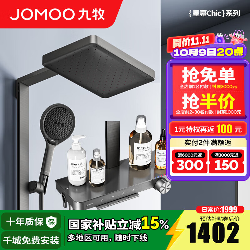 九牧(JOMOO)淋浴花洒套装钢琴按键大置物台丝雨花洒喷头顶喷自动除垢淋浴器 【星幕Chic】自洁花洒36672