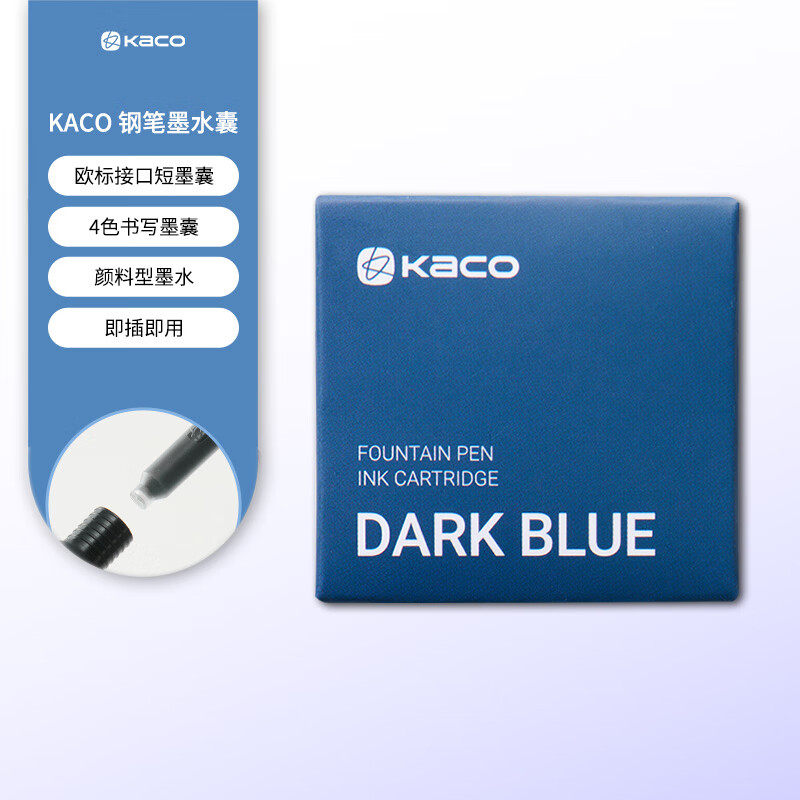 KACO可擦短款大容量墨胆 蓝黑红色钢笔通用一次性可擦墨囊 染料型墨水出水顺畅不堵笔6支装 蓝黑色6支装(可用化学擦擦除非热可擦)