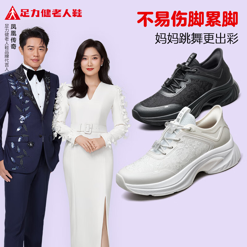 足力健老人鞋跳舞鞋新款运动鞋轻便柔软不易累脚女士休闲鞋【送礼长辈】 蕾丝白-妈妈鞋 37
