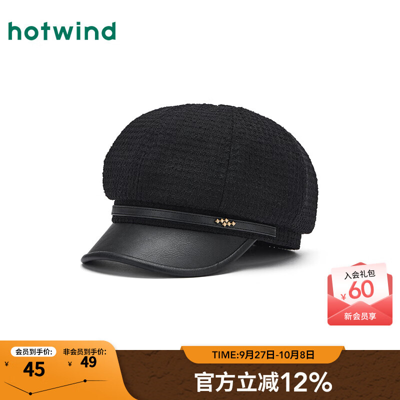 热风(Hotwind)女士八角帽2025年秋季新款气质显脸小鸭舌拼接八角帽百搭贝雷帽 01黑色 F