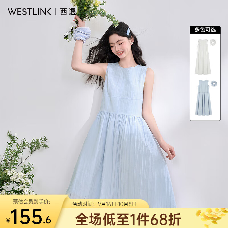 西遇无袖背心裙女夏季新款大裙摆通勤法式圆领吊带连衣裙 蓝色 L