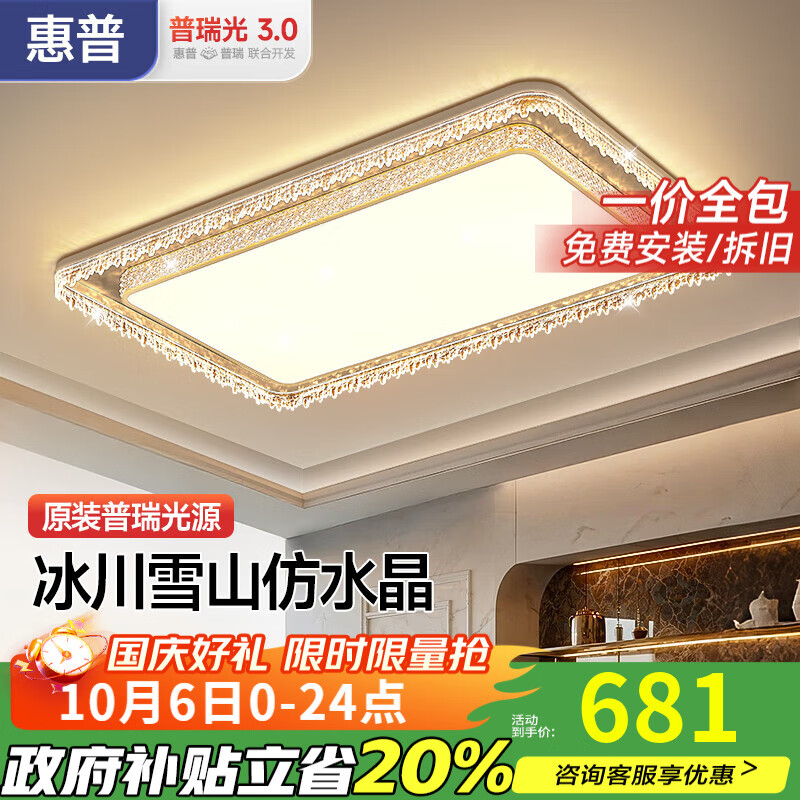 惠普客厅大灯吸顶灯现代简约大气轻奢卧室餐厅全屋组合套餐 180W 35㎡内适用 110*70CM喵喵精灵