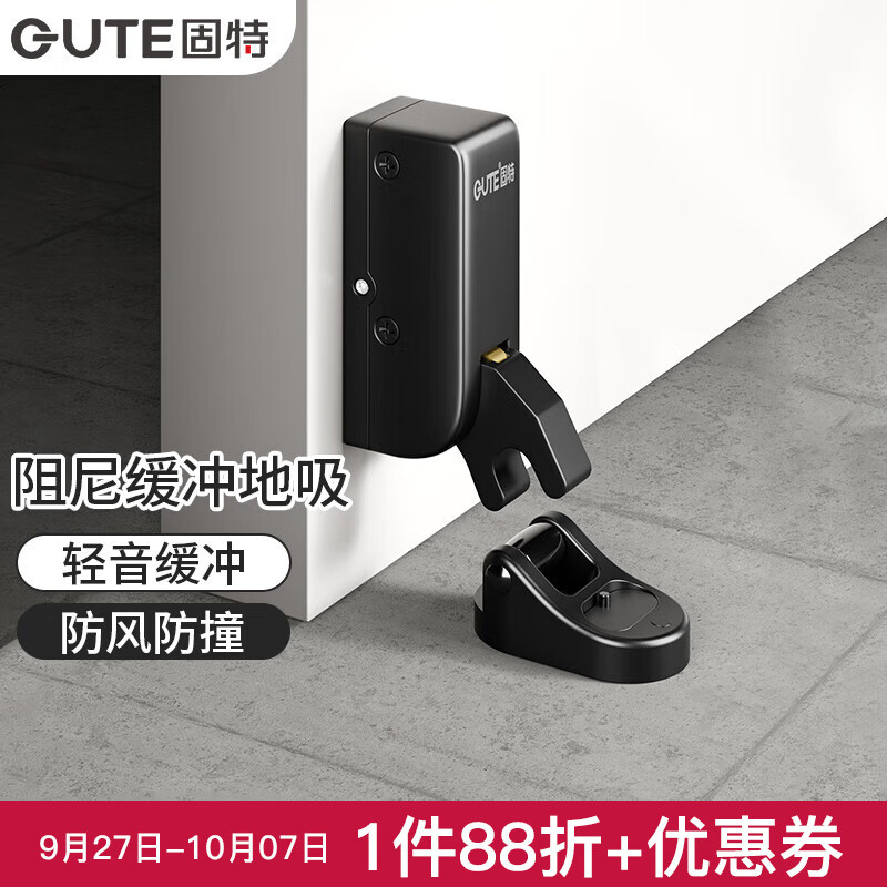 固特(GUTE)门吸防撞防风地吸阻尼液压缓冲门碰门阻器卫生间铝框室内房间门挡 哑黑色 液压缓冲地吸