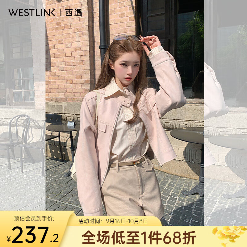 西遇(Westlink)短款夹克外套女2025年秋季新款韩系早秋粉色圆领拉链宽松上衣 粉色 (预售15天) M (160)
