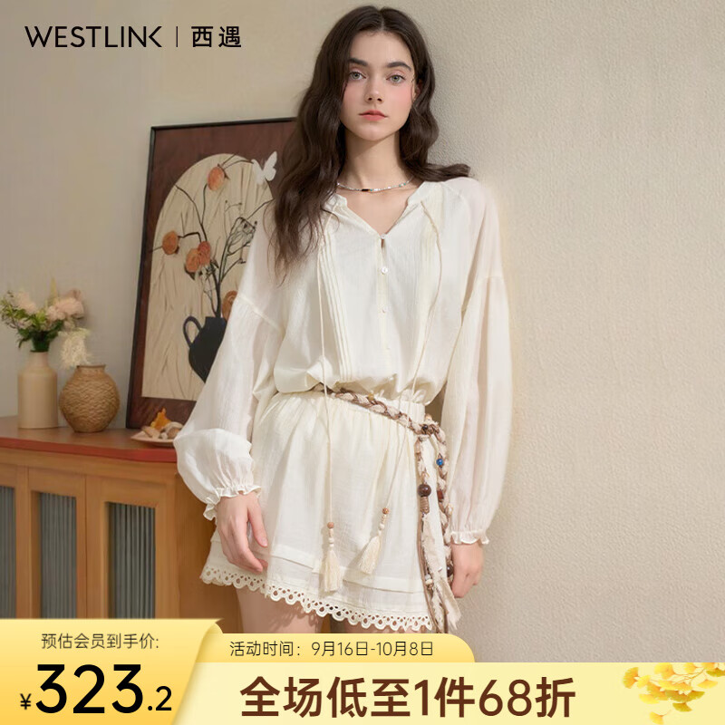 西遇气质文艺休闲套装女2025秋季V领长袖衬衫搭半身裙两件套 杏色 XL (170)